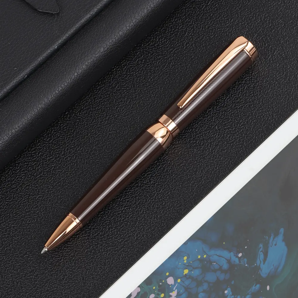 قطعة واحدة من قلم حبر جاف، جسم قلم لون القهوة الفاخر منخفض المستوى، طرف فائق الدقة 0.5 مم، مناسب لهدايا المكتب - حبر أسود، BTS