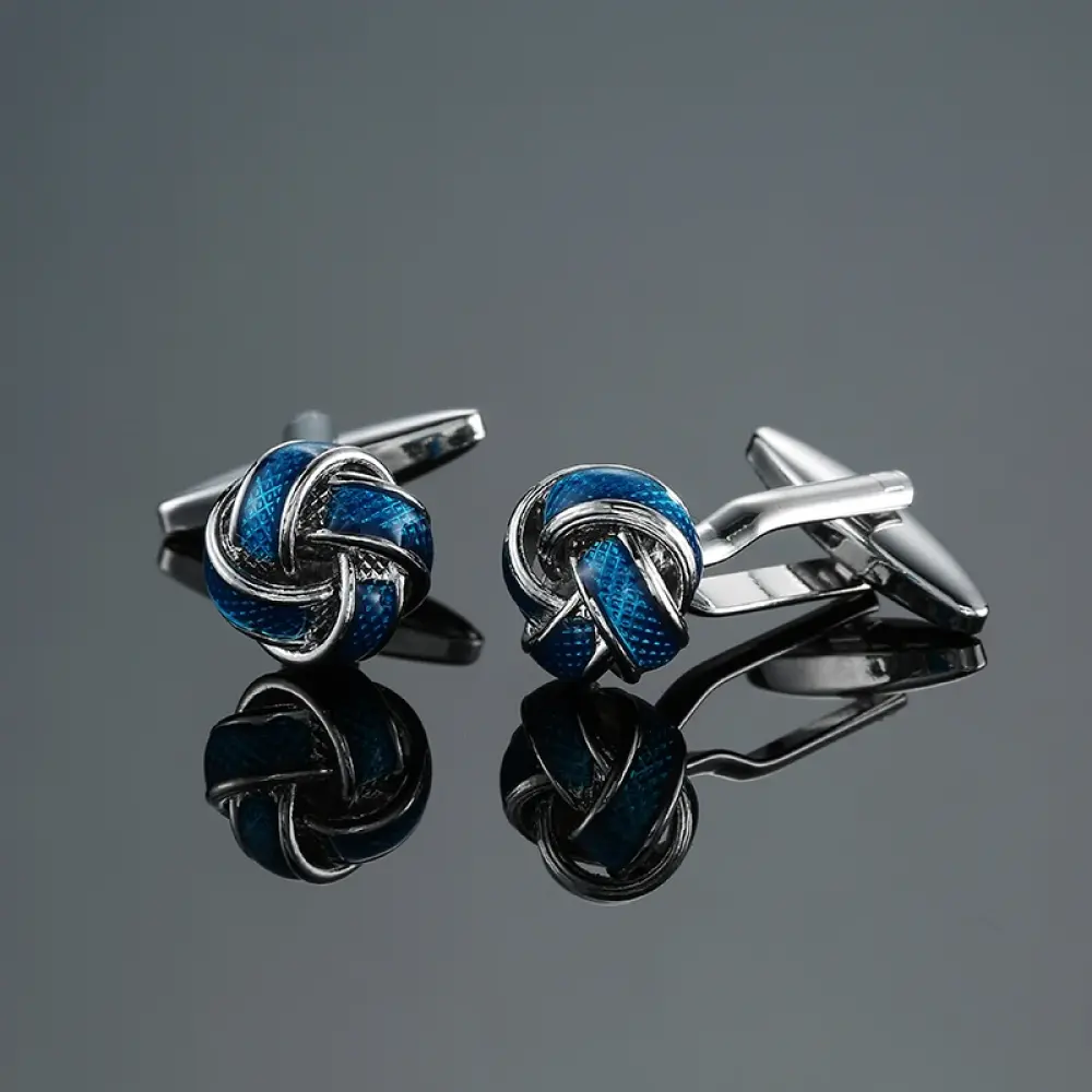 قميص فرنسي أزرار أكمام مادة النحاس ، جولة الأزرق المنسوجة عقدة ، أزرار أكمام الموضة ، اكسسوارات الملابس ، الجملة