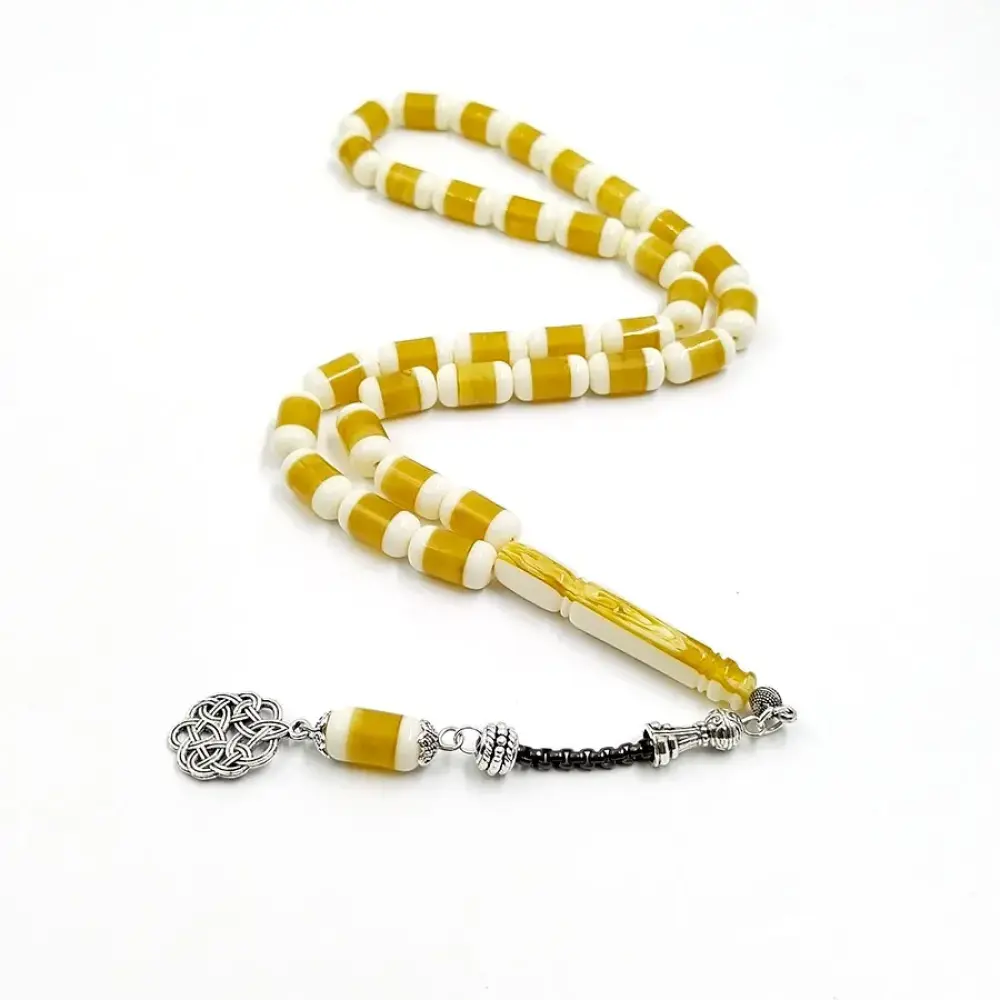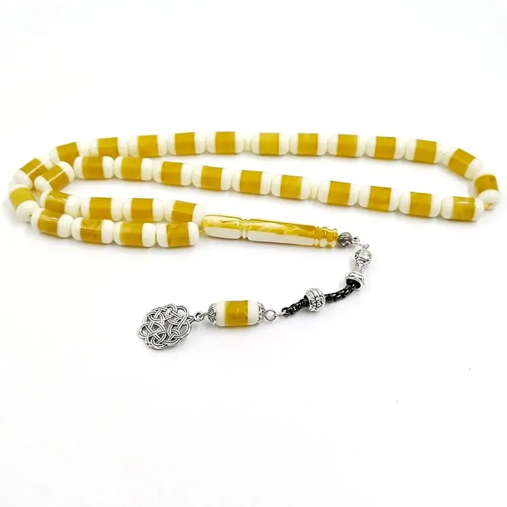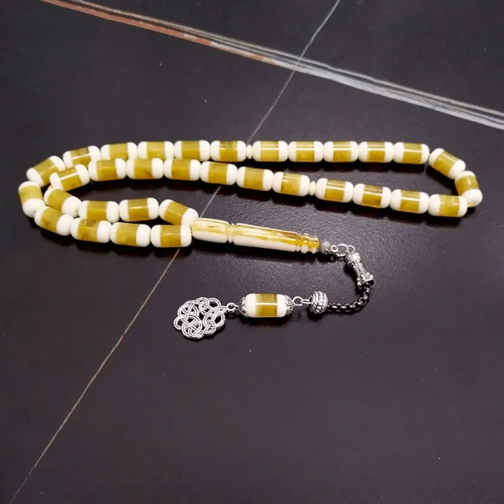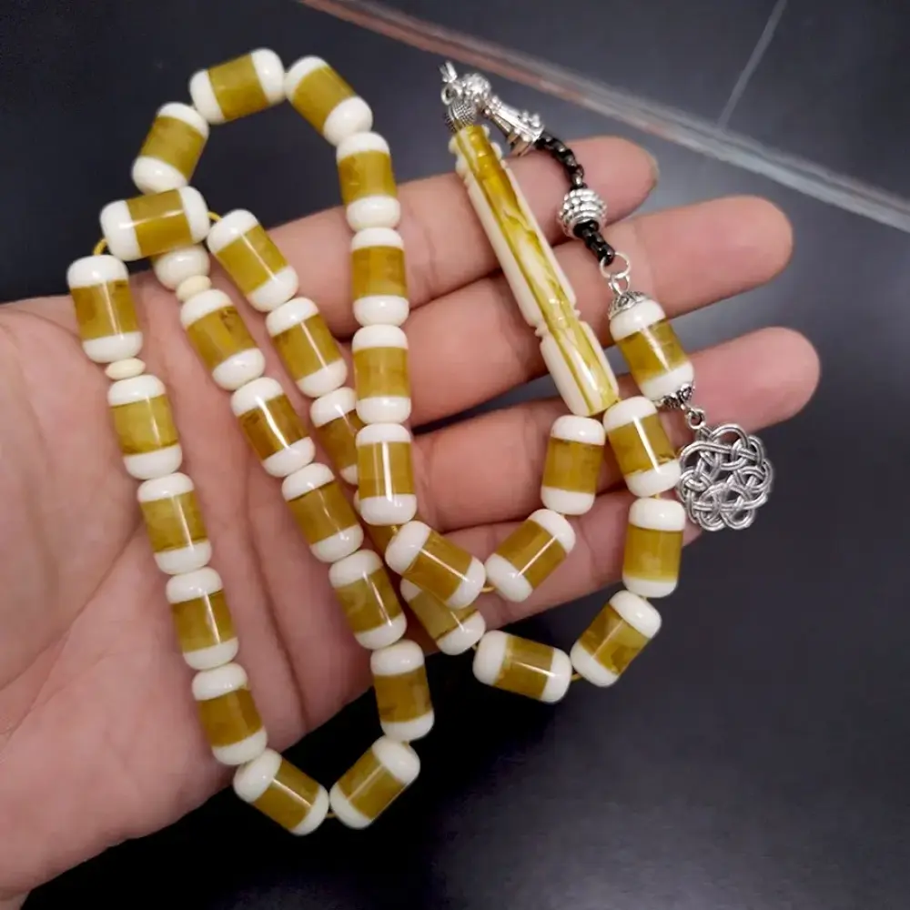 تسبيح 9x16 مللي متر الأصفر والأبيض الراتنج مسلم سبحة صلاة سوار الموضة الإسلامية رمضان عيد هدية العربية اكسسوارات