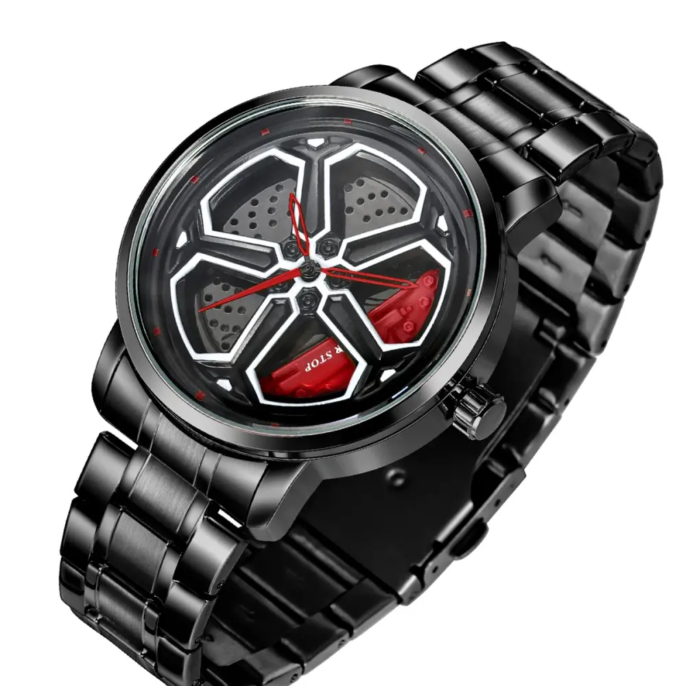 ساعة رجالية عجلة شخصية 360 ° الدورية عالية الجودة الصلب حزام الطالب ساعة اليد جوفاء الذكور موضة ساعات الكوارتز على مدار الساعة