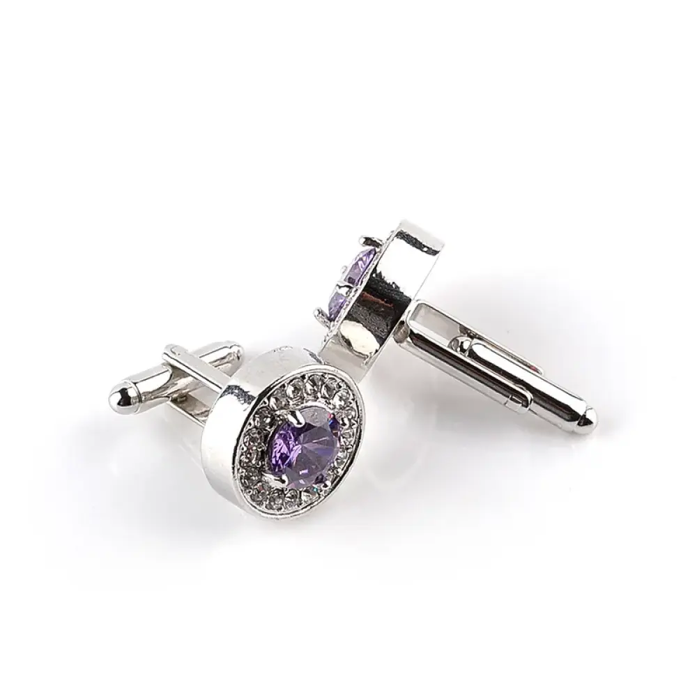 أزرار أكمام فاخرة من الكريستال والمينا الأرجواني والأبيض للرجال ، مجوهرات عالية الجودة ، أزرار أكمام مستديرة لحفلات الزفاف ، قميص فرنسي