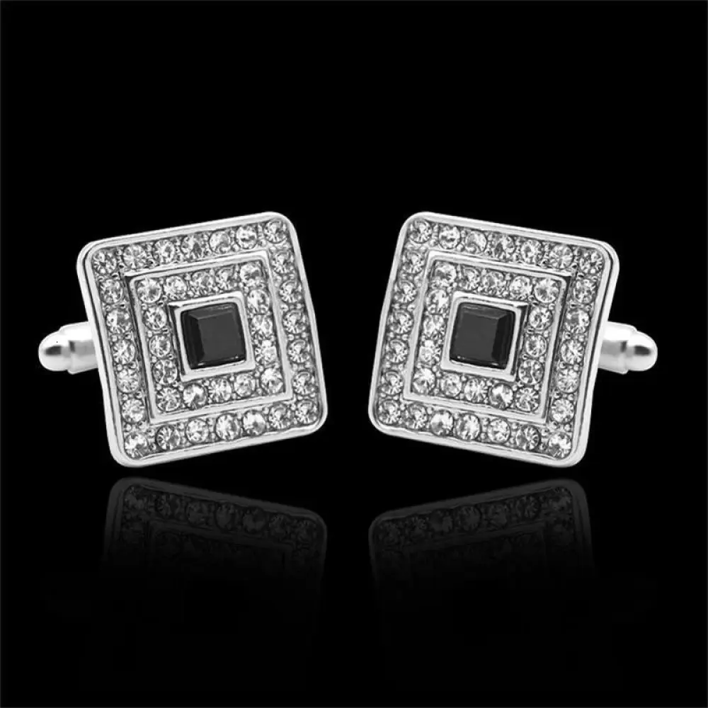 أزرار أكمام لامعة مربعة للرجال ، مجوهرات زر حجر الراين ، قميص فرنسي ، اكسسوارات بدلة رجالية ، عالية الجودة ، صبي