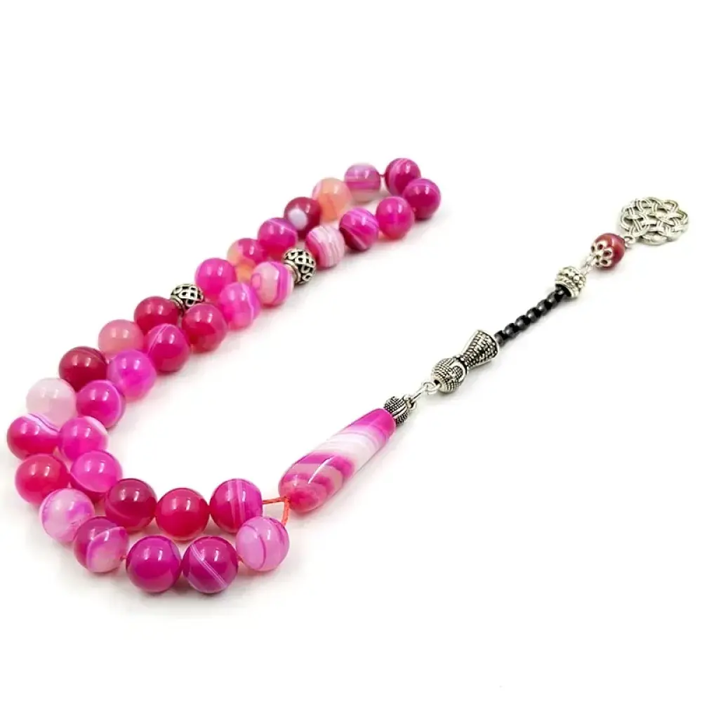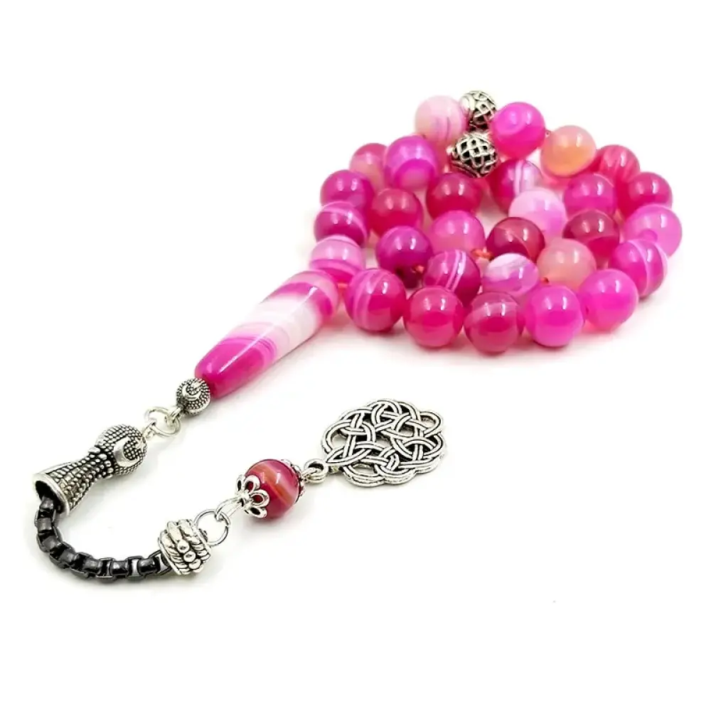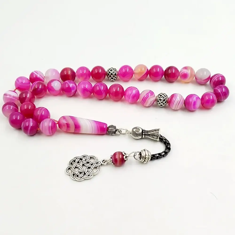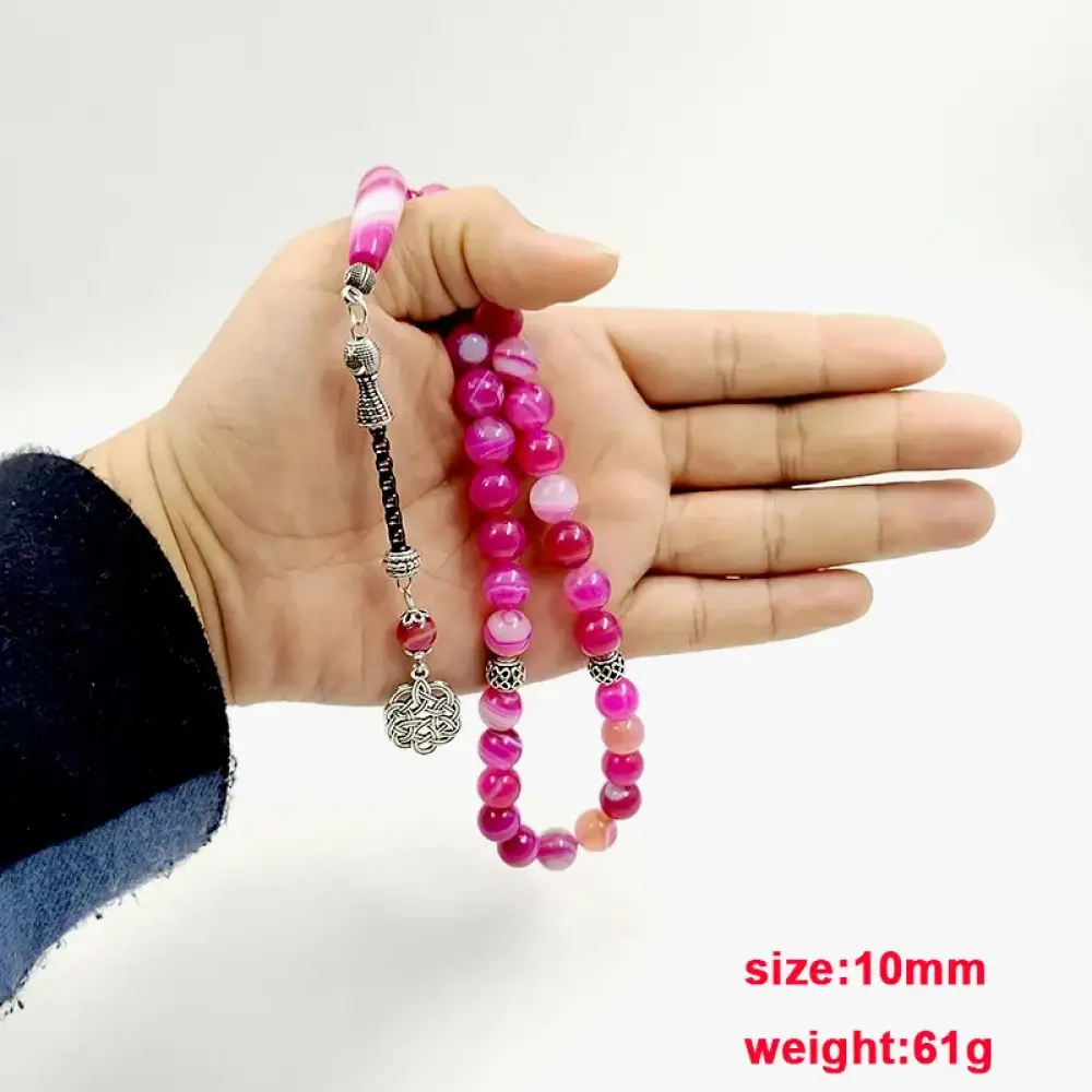 هدية مسبحة إسلامية ، عقيق وردي طبيعي ، أحجار كريمة إسلامية ، حبات صلاة عربية ، سوار على الموضة التركية ، 33 45 51 66 99