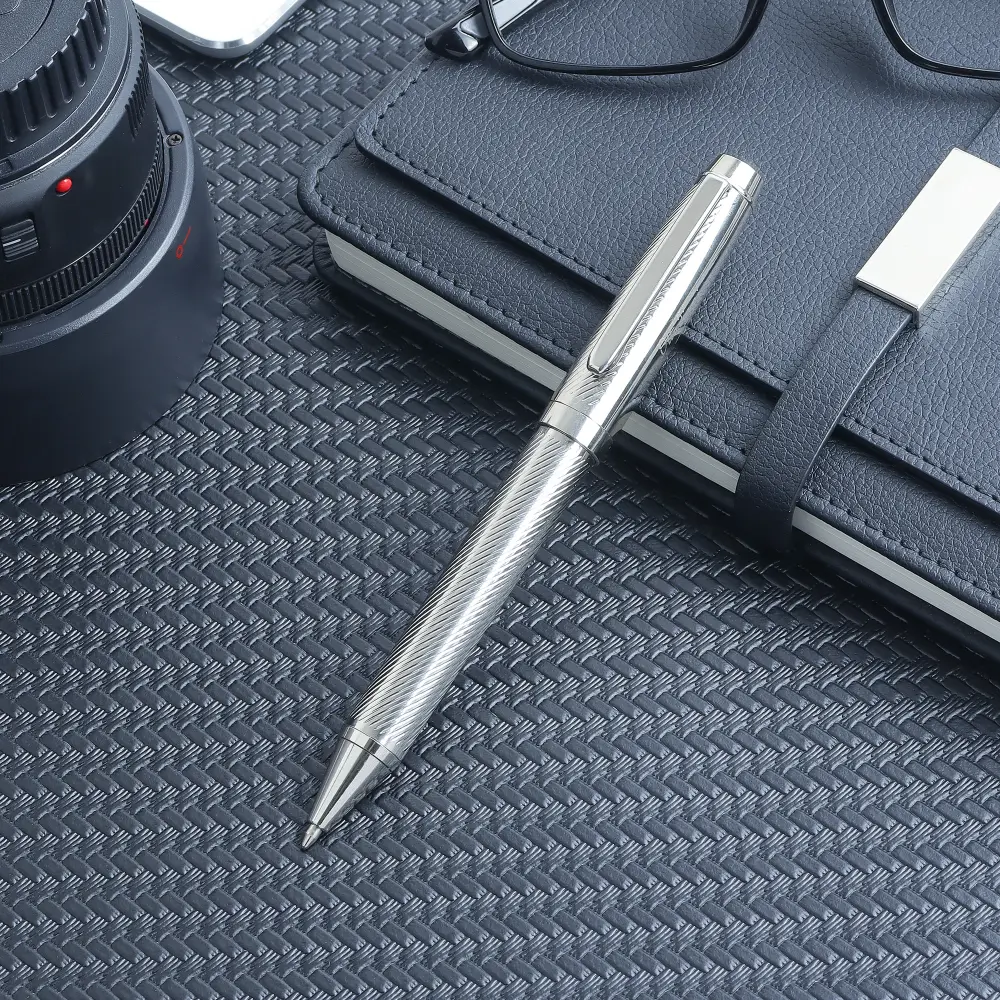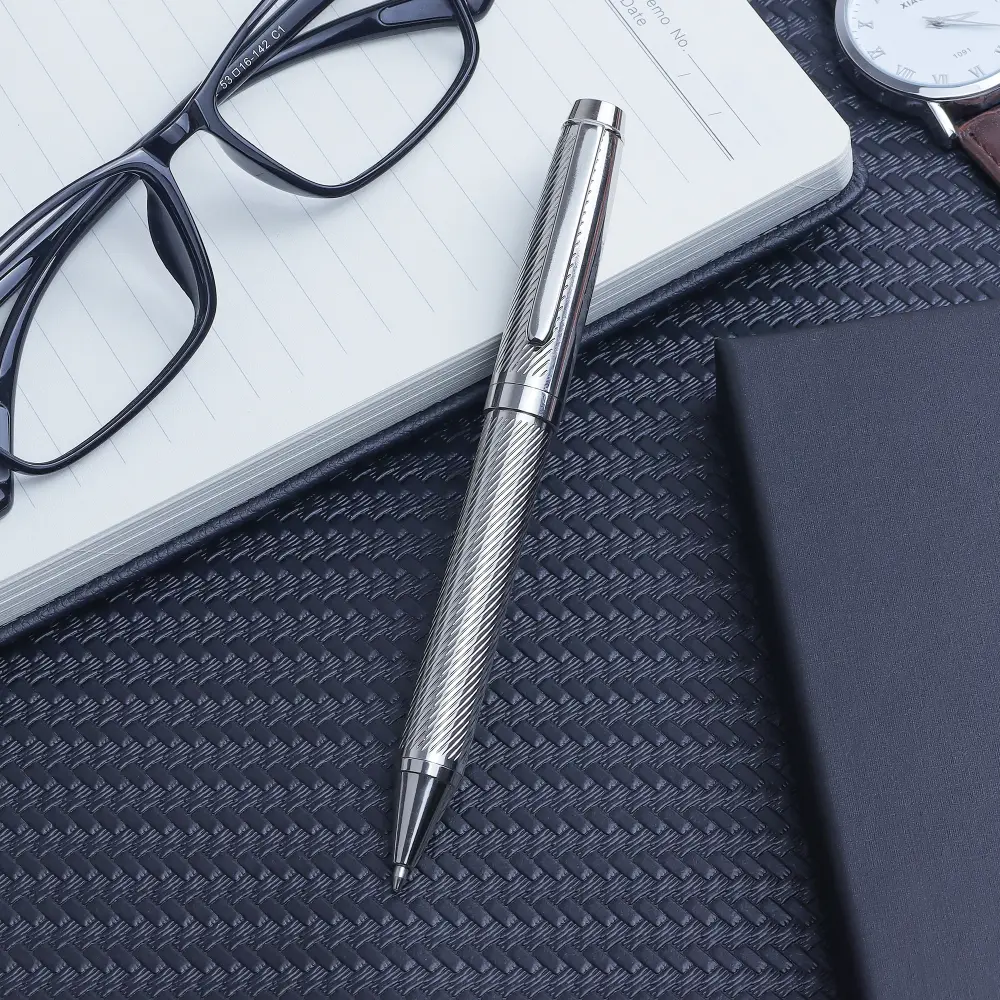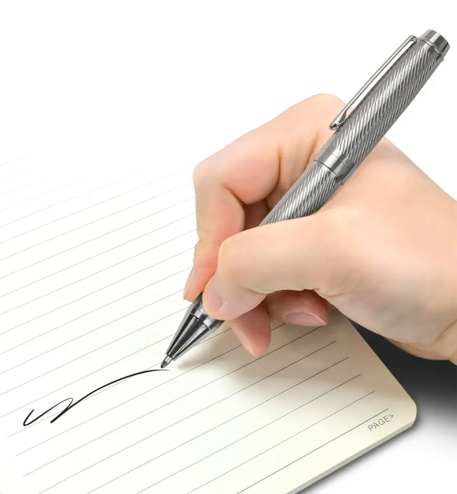 مجموعة واحدة من أقلام حبر جاف للأعمال الفاخرة - أناقة فضية، حبر أسود ناعم